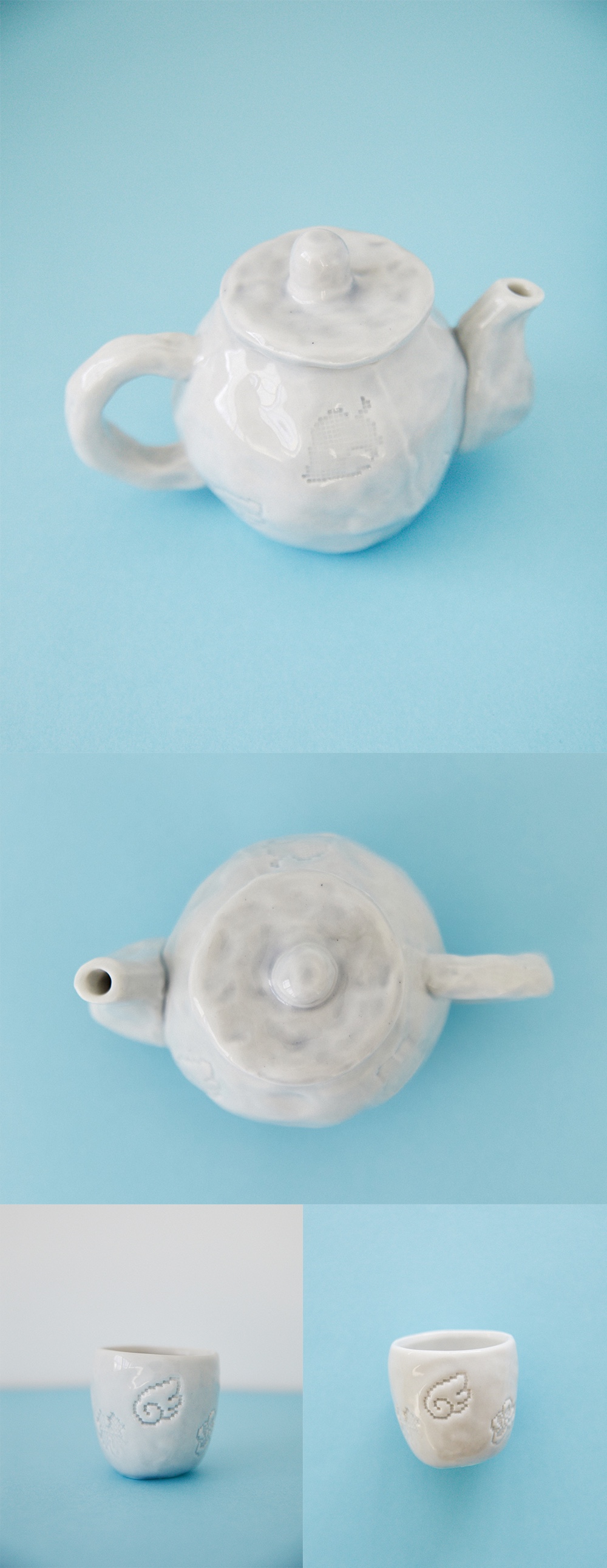 A charming teapot with a soft, rounded silhouette. Each piece is unique as the stamp placement varies, adding a special touch to your tea time.