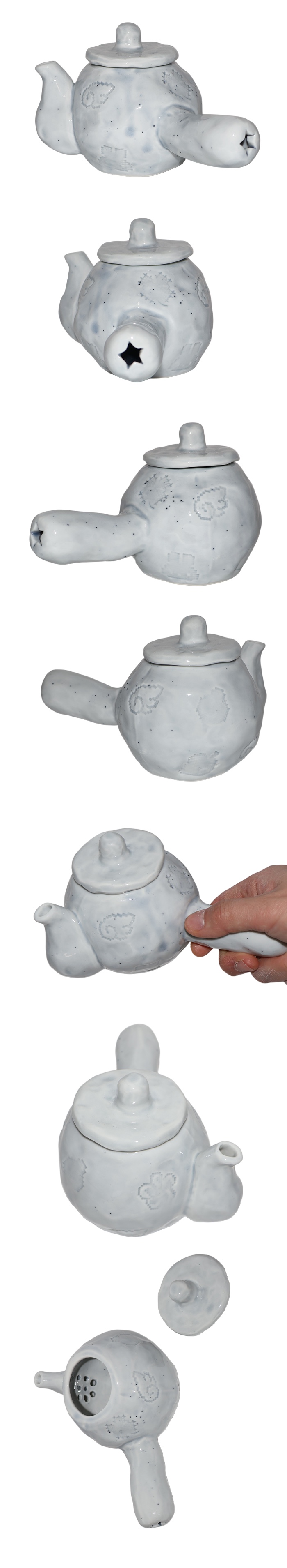 A charming teapot with a soft, rounded silhouette. Each piece is unique as the stamp placement varies, adding a special touch to your tea time.