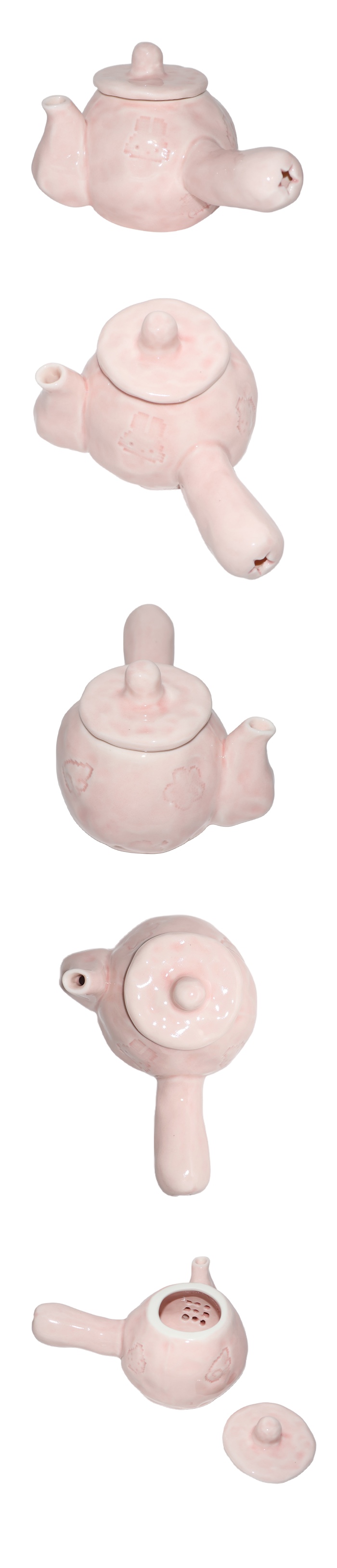 A charming teapot with a soft, rounded silhouette. Each piece is unique as the stamp placement varies, adding a special touch to your tea time.
